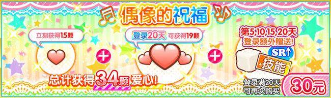 在“冬季嘉年华”活动中,购买『偶像的祝福』礼包,除了能获得礼包内物品,登录20天还会有额外的登录奖励!
