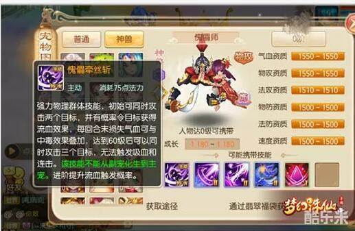 1)作为神兽的傀儡师拥有高成长和很高的资质,如果将其培养成状态型宠物它也有很突出的气血资质和速度资质。