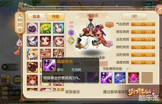 2)和变异型宠物相比,神兽傀儡师获得特有技能和成长技能的方式也比较方便,简单的消耗神兽碎片就可以进阶,就可以完成其成长。