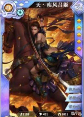 2、疾风吕姬,4气打断技能,欺负下平民周瑜队还是可以的,配合击杀回血,总的来说,是张能扩大优势滚雪球的战术性卡,逆风局和势均力敌局表现一般,也许能当后宫?