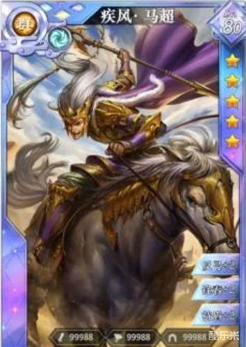 3、疾风马超,这张卡设计的有点奇怪,和4星卡技能一样,应该是传承卡才对(改成高级骑兵兵种)。不用多说,和4星马超一样食用,打周瑜,打输出,另外可以冲锋免疫法伤扛诸葛。
