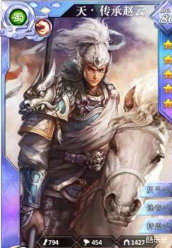 这张卡设计的有点奇怪,和4星卡技能一样,应该是传承卡才对(改成高级骑兵兵种)。不用多说,和4星马超一样食用,打周瑜,打输出,另外可以冲锋免疫法伤扛诸葛。