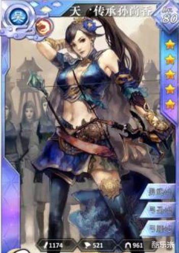 4、传承孙尚香,吴弓队核心,提供DEBUFF!这游戏的技能有3种,直伤、BUFF、DEBUFF,我认为一个合格的队伍应该3种技能都要具备,以应对各种情况。所以孙尚香入选吴国国家队!
