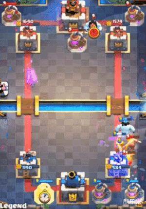 这套冠军三枪之所以内战无敌,就在于有一手无解combo:冰人+攻城槌+冰冻,堪称百分百撞塔的必中大招。在后期抢血阶段,槌子顶冰人,冰冻捏在手里秒冻面对防守单位+公主塔。防不好一波塔不死也惨,防得好也要吃槌子一撞。要知道在没有斩杀的三枪内战,残血塔等于满血塔,有如此神技可立于不败之地。