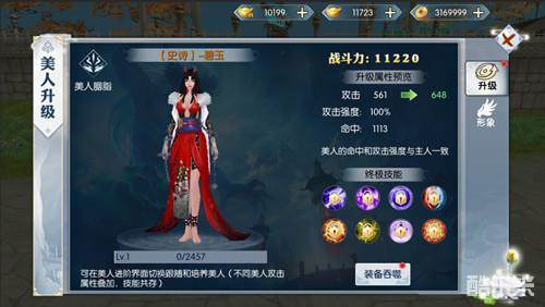 行走江湖,总要有三五红颜知己陪伴才算逍遥。游戏中的美人系统便是为广大玩家量身定做的“最佳伴侣”。美人在游戏中不仅可以与你共同作战击退敌人,也可以将万千宠爱集于一身,为她换上漂亮的新衣。同样,美人也是可以通过装备吞噬进行升级,从而提升战斗力。想要让你的美人不仅好看还要战力爆表?那你可要好好的对待她了~