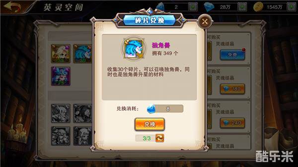英灵空间中的英雄碎片通过灵魂结晶进行兑换,每天都可以免费获得一定数量的灵魂结晶。点击英雄碎片图标,即可进行兑换;每个英雄每天默认最多可兑换3个碎片,如果需要更多,则需要进行刷新。