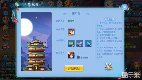 首先我们先来了解一下修炼塔的规则。这是永祥帝为了封印妖魔而建的修炼塔,各位天选者可担任进行爬塔调整,进入条件不限,次数不限,修炼塔最高100层,每通关一层都能获得对应奖励。每10层都有boss坐镇,层数越高难度越大,当然奖励也会更好。