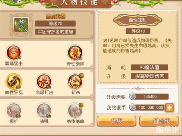 血怒打击: 消耗20%自身当前生命值,对敌方数名单位造成物理伤害。(失血:施放该技能时,当自身生命值高于50%时,打击3名敌方;当自身生命值低于50%时,打击4名敌方)