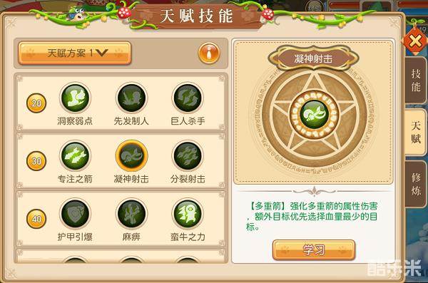 【多重箭】强化多重箭的属性伤害,额外目标优先选择血量最少的目标。