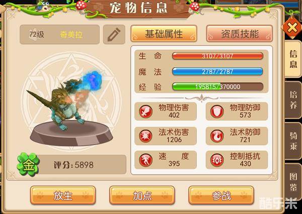 假设小编今天获得了一只金色的奇美拉,那么就要给它安排打书了。如果不打书不升级的话,金色的奇美拉也只是颜色漂亮,实际用处并不大。