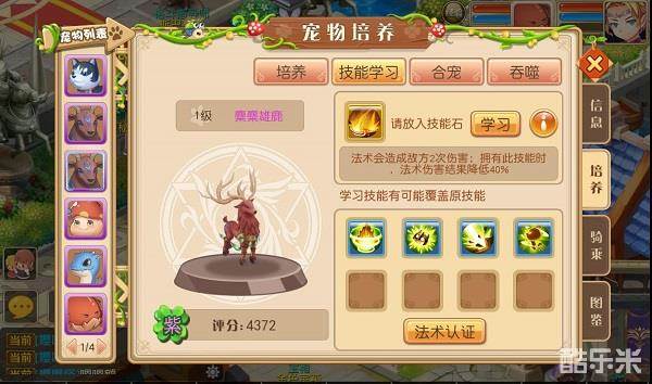 3.打书最多只能学习到4个技能,目前合宠最多可获得8技能宠物,为了收益最大化,建议大家使用两只没有重复技能的4技能宠物进行合成,有可能直接获得8技能宠物。