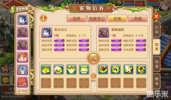 2.紫色、金色品质的宠物较稀有,所以使用价值比较高。可以给紫色或者金色宠物打书,学习到4个技能之后再用于合宠,这样获得多技能宠物的几率更高。