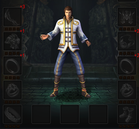 我们发现,右侧显示的居然是“部位”,而且正好对应人物属性的10个部位!这也就意味着不管穿戴的装备如何改变,强化等级都是不变的!去角色那里看看,果然如此,没穿装备就已经显示出了强化等级了。这就不需要打一件装备就强化一件装备了,赞一个!