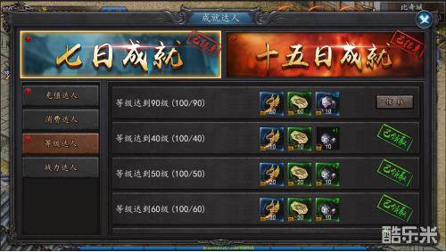 当玩家新建角色进入游戏后便开启了冲级升战力的历程,游戏中为玩家们在前7天和前15天的冲级历程特意准备了一个简单易达成的成就活动,达成后会给予玩家丰厚的奖励。