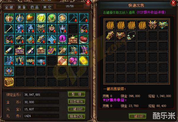装备回收除了能获得一定的绑定金币外,还能获得大量的经验值,还有可能获得灵魄。普通玩家只能获得一定奖励,而赤月传说vip玩家除了获得一键回收的奖励外,还可额外奖励,即在回收的基础上再增加6%的,vip等级越高,vip额外也会越多。