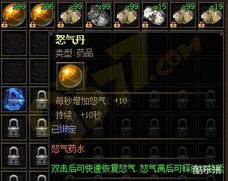 前面讲了那么多关于怒气技能的威力,主要是为了让玩家知道怒气值的重要性所在。接下来,小编正式为大家讲解赤月传说怒气丹怎么使用。怒气丹属于怒气药水类道具,在背包里双击后可快速恢复怒气,每秒增加怒气10点,可持续增加10秒,即每使用一个可增加100点怒气值。
