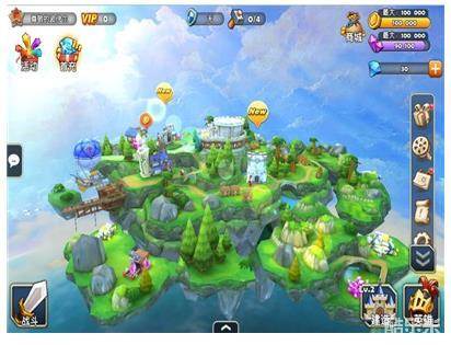 而当我们进入游戏,首先映入眼帘的就是一个阳光弥漫下璀璨绚丽的中世纪城堡,由于游戏画面使用了先进的U3D引擎技术并且采取了360度自由旋转的视角,因此这个“天空之城”的视觉表现力十分出色,给笔者带来了十分强烈的视觉震撼,堪称本作的一大亮点!