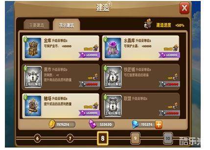 本作中的建筑可以按照功能不同分为三类,分别是军事建筑,主要包括英雄酒馆、兵营、士兵科技等,通过修建和升级这些建筑玩家可以获得不同的兵种,研究不同的军事科技;资源建筑,主要包括民房、金矿、水晶矿等,主要作用就是为人口和资源提供存储空间;功能建筑,包括主城、黑市、铁匠铺等,可以用来交换资源、打造装备等。