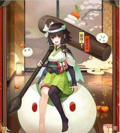 介绍文字说明这次的数珠新皮和打年糕有关系,因为在日本,过春节就是要打年糕的,数珠手中拿的就是打年糕的锤子,坐的也是打好的年糕,年糕就是用糯米等打出来的,数珠的还是圆圆的白白的,就像是糯米团子一样,不知道玩家们喜欢数珠的这款新皮肤吗?