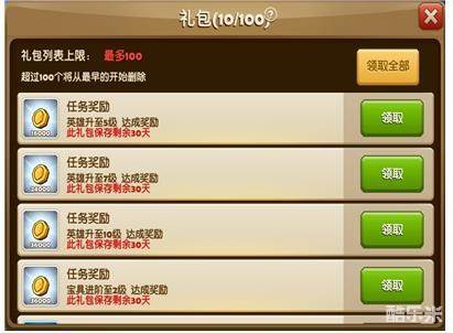 礼包可存放上限为100个,如果超过上限新的礼包将无法领取。因此我们要及时领取已经存在的礼包,防止礼包超过上限。