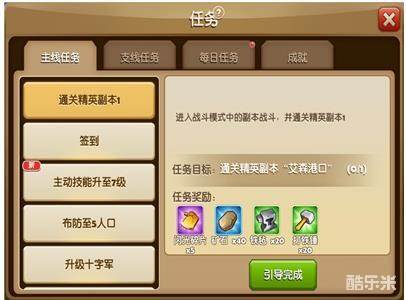 任务引导:任务会有引导功能,玩家可以通过此功能快速选中任务指向的功能。