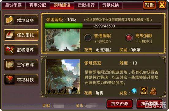 玩家进行领地捐献,提交领地资源都可以获得贡献。