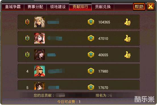 贡献兑换消耗玩家的当前领地贡献,不会影响玩家的总贡献排行数据。