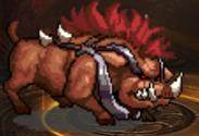 战兽特点:野性很强,有着尖锐的獠牙,危险程度极高,只要有东西挡住它们的视线,就会不分敌我地盯准目标突进。