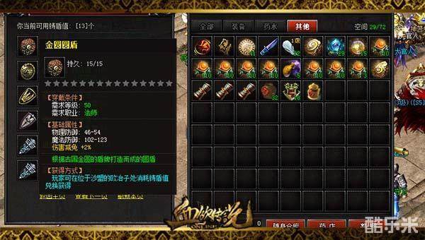 1. 金圆圆盾:用古代带有魔力的黄金打造,其坚硬度可见一斑。