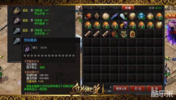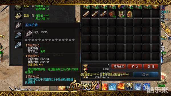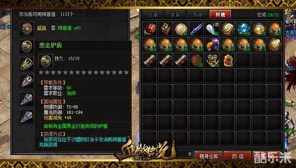 2. 黑金护盾:黑金是最坚硬的矿石,用其打造护盾坚硬非常!
