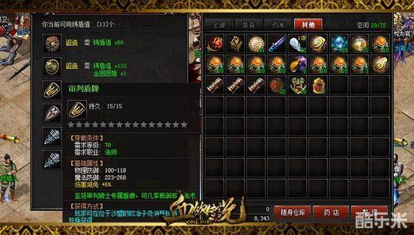 3. 审判盾牌:圣廷的圣骑士佩戴的盾牌,融合圣光之力,可净化万物。