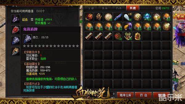 8. 鬼面盾牌:在盾牌上镶有恶灵的鬼面,鬼面具有灵魂,可协助防御。