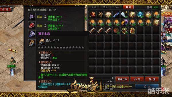 玩家制作护盾需要铸盾值,铸盾值是《血饮传说》又一种独立货币,通过镇妖塔,每日在线奖励等多种手段可以获得。在沙盟的欧治子处可凭借铸盾值兑换强大的护盾。