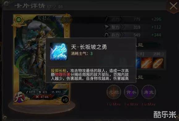 蜀国这个版本有两个很强的物攻武将,一个是黄忠,相信大家都已经知道黄忠的威力了,开场秒脆皮,非常好用。另一个其实就是赵云,技能攻击物攻最低的武将,目标周围的人越少,伤害越高。