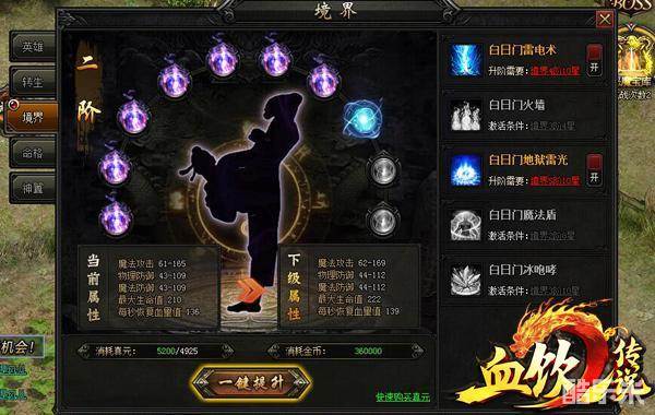 《血饮传说》中,当大家通过主线任务激活境英雄系统之后,就会发现这个系统中有一个名为“境界”的玩法,而这个就是英雄技能升级的奥义。