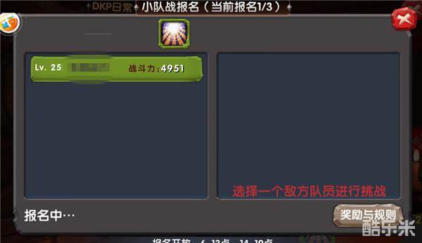 小队战是自主报名模式,每天6-13点,14-19点可参战。每次小队战,参战一方需满足3个成员报名的条件,达到条件后,系统会自动匹配其他公会进行对战。