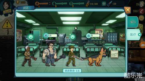 3.首先我们要回到自己的避难所里,然后点击右下角的药箱按钮进入医务室,让受辐射或者死亡的英雄接受治疗,恢复他们的战斗力!