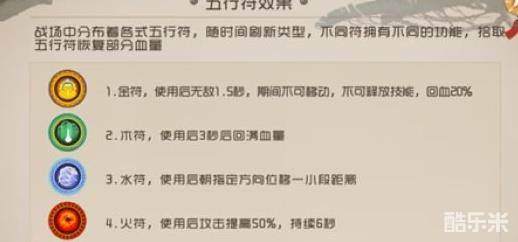 在战场的各个据点都会刷新五行符,不同的五行符是有不同的增益效果的,五行符在拾取之后会为英雄回复一部分血量,如若未使用掉,下次拾取五行符将不会回复血量,所以我们在残血的时候,可以先使用一张五行符后在拾取第二张。