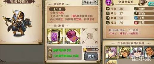 露娜拥有的三级转职兵种有:突袭弩骑兵(弓骑统帅)、大精灵(弓骑统帅)、皇家狮鹫(圣天马统帅)、重装骑兵(圣天马统帅),练兵场解锁兵种有旋风游骑兵、圣天马、天琴亲卫。