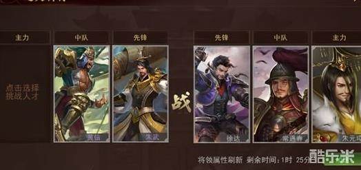 出战顺序:先锋、中队、主力。因为敌方武将的兵种/属性/技能都能提前看到,所以可以选择克制他们的武将和兵种出击。