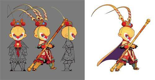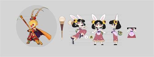 复古讨巧的国产美术画风是《闹闹天宫》最显性的视觉标签,带着童年上海美术厂一般的儿时记忆。从设计稿来看,游戏中各种造型鲜明的角色,都带有独特的动作模组,每一个角色都参照《西游记》以及中国经典神话故事追本溯源,设计非常用心。