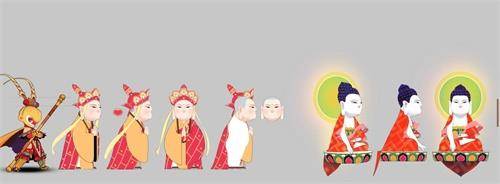 慈眉善目普度众生,幻化成佛法力无边。唐僧的设计主要突显了两幅面孔,从僧人时期的悲悯众人,到取经成佛后的端庄森严,都描绘的恰到好处。