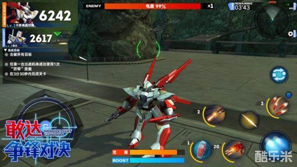 “敢达”形态下的主射击武器可以做到很多机体做不到的事,当机体背朝目标时,主射攻击会直接使用背部的GN破坏炮炮击目标,无需玩家再去转动机体面向即可快狠准的打击目标,在实战中甚至可以用背对敌人使其上钩。格斗方面,刀判及刀速都很不错。