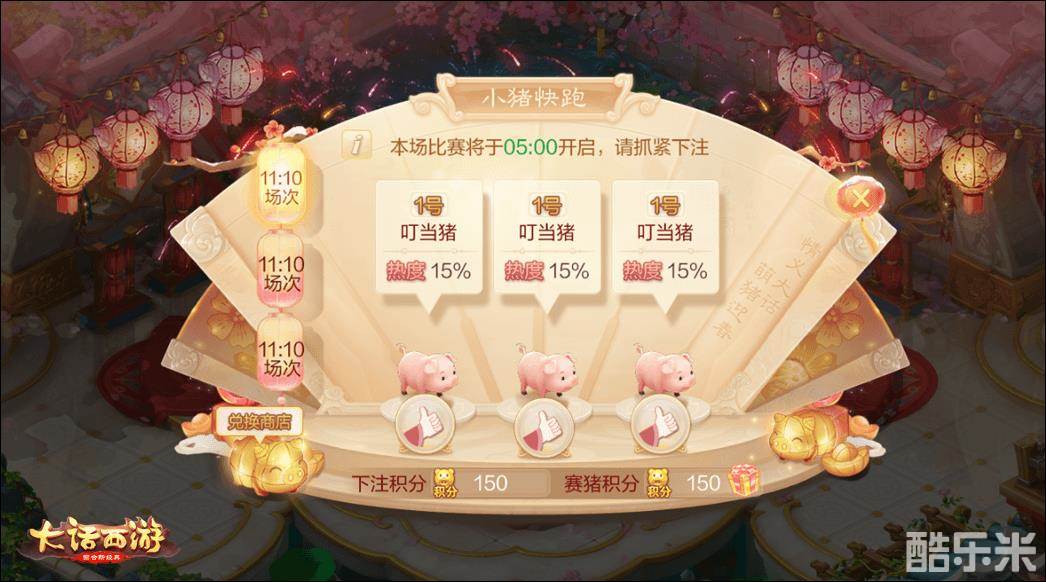 除了在除夕有金猪送福,在1月31日到2月12日,3只身强体壮的小猪将来到长安城,开启“小猪快跑”活动,在城里比一比谁跑得快。玩家们只需要在小猪们进行比赛前进行下注,猜中小猪们赛跑的结果就有机会获得丰富的奖励哦!经验、强化道具、1级五行材料、时装、九戒……统统有机会带回家!