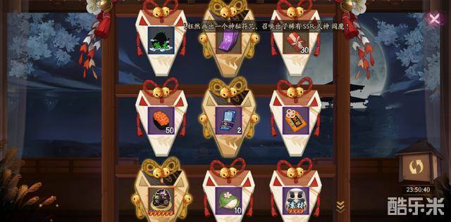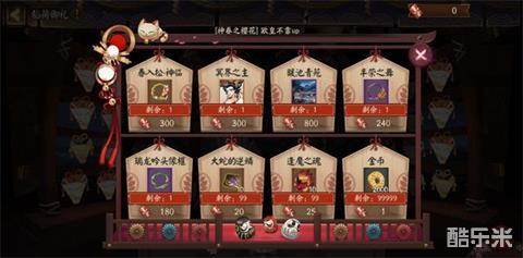 本次活动没啥难度,就是参与祈愿活动,然后随机点亮一个绘马礼物,全都点亮之后可以领取神秘奖励。这里得兑换货币是通过完成全部每日任务、逢魔活动、礼包商店氪金等途径获取的。