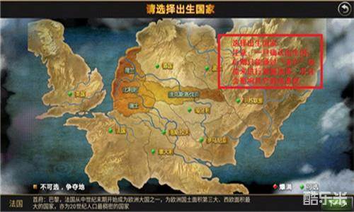 1,地图上共十三国,除了四个争夺地之外,其余九国均为可选。(注意:国家一旦确定,后期只能通过流亡来进行改变,并且会影响联盟关系等游戏进度)