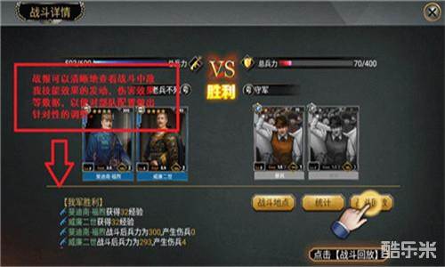 4,清剿敌军,查看战斗回放以及记录,可以对己方部队的配置做出针对性的优化调整,改善针对不同敌军的战斗效果,提升效率。