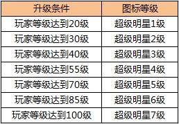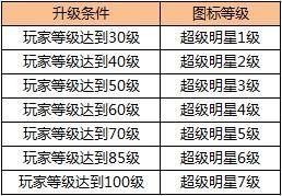 感谢您对《超级明星》的支持!为了给您带来更好游戏体验, 超级明星近期会对图标点亮等级做一定的调整,具体调整如下: