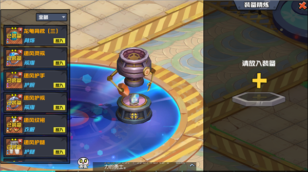 在点击精炼的一瞬间,精炼炉就瞬间出现在天城中央。此时,只需要选择一样自己心仪的装备放入即可。