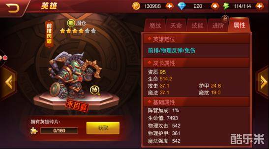 二:周仓(纯肉英雄,巨肉反伤,还能闪避,看体型就知道多肉- -)推荐星数:5星